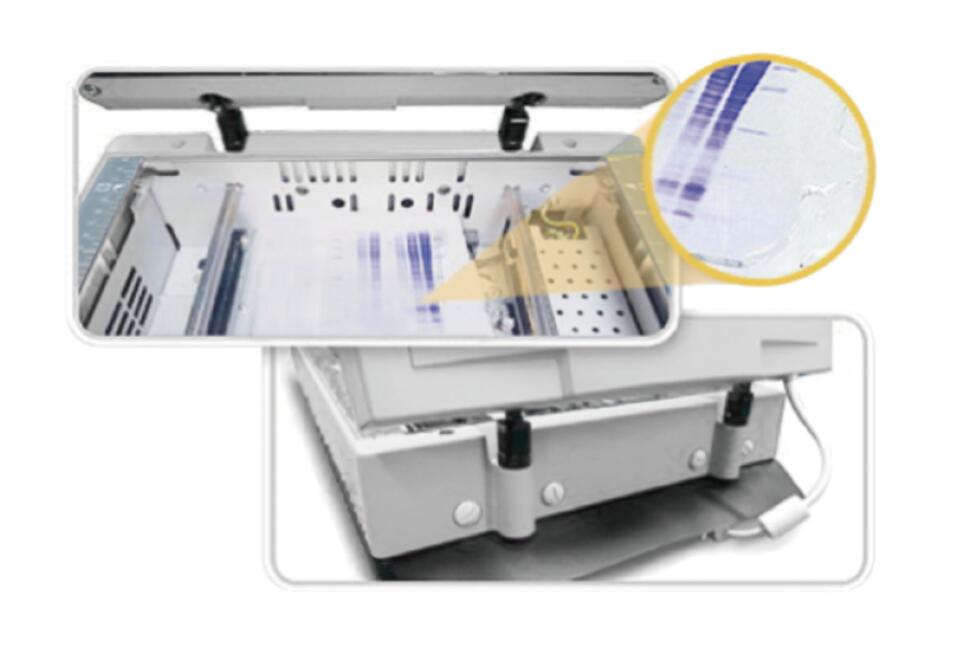 本机内建11.6" × 16"尺寸穿透稿扫描适配器,除可扫描较大胶体/胶片外,亦可扫描一般纸质文档,提供研究人员多样的扫描功能。为便于扫描湿式胶体,本扫描仪具备防漏设计,避免凝胶液体渗入机台内,造成损坏。