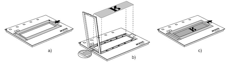 这一部分教您如何使用ArtixScan F2扫描仪的下层平台。扫描透射稿时,有以下两种方式: