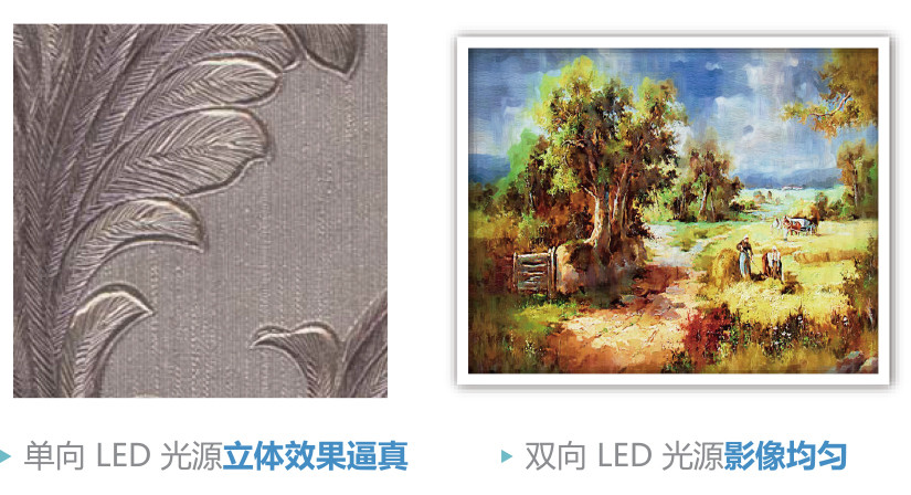 提供稳定均衡的单/双向可切换LED光源,根据扫描对象自由选择,确保取得的影像品质。双向LED光源,解决了普通扫描仪扫描皱褶稿件时的阴影问题,同时影像细致清晰。单向LED光源,扫描实物立体感逼真,可忠实呈现物件表面的影像细节。可切换单/双向LED光源,依据需要选择投光效果,以获取清晰逼真的平面影像或者有立体感的影像。