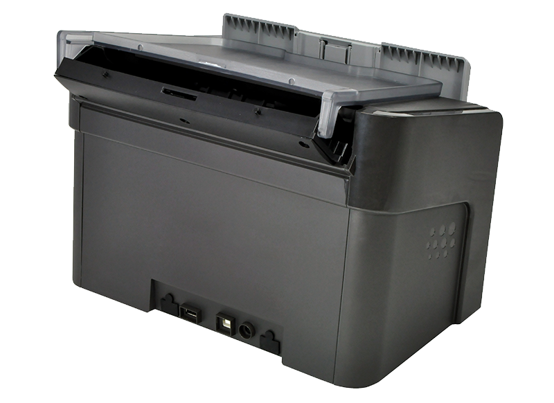 一次性可放置100页A4标准纸的进纸器,尤如一个“吃纸巨兽”,能批量处理不同厚度、不同尺寸、不同材质的文档及硬卡(身份证、银行卡或小于1.3毫米厚度的浮雕卡)。